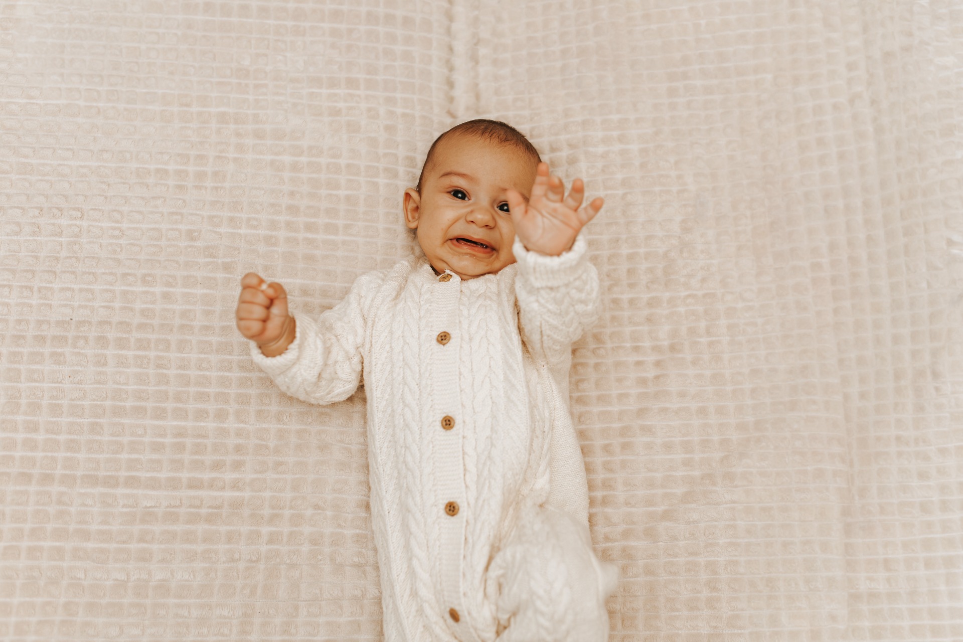 Fotografie tak nevznikají podle předem daných póz, ale zachycují opravdové momenty. Malé ručičky, první zívnutí, doteky rodičů i sourozenců.